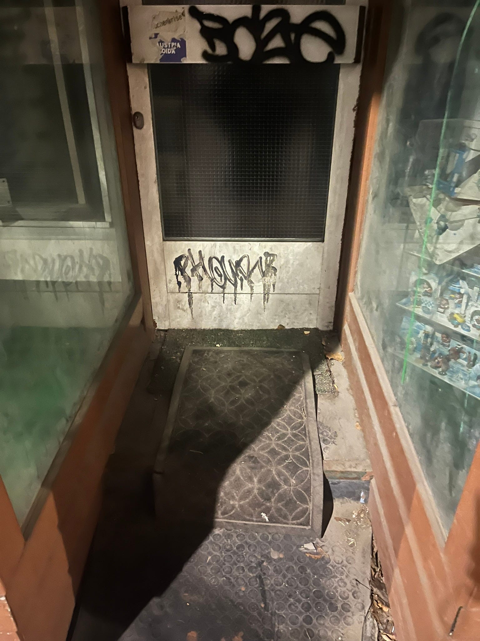 When we moved, in 2017, this defunct and dusty ex-shop window, not far from our apartment, displayed signs of its past, despite having closed, sometime in the early noughties.