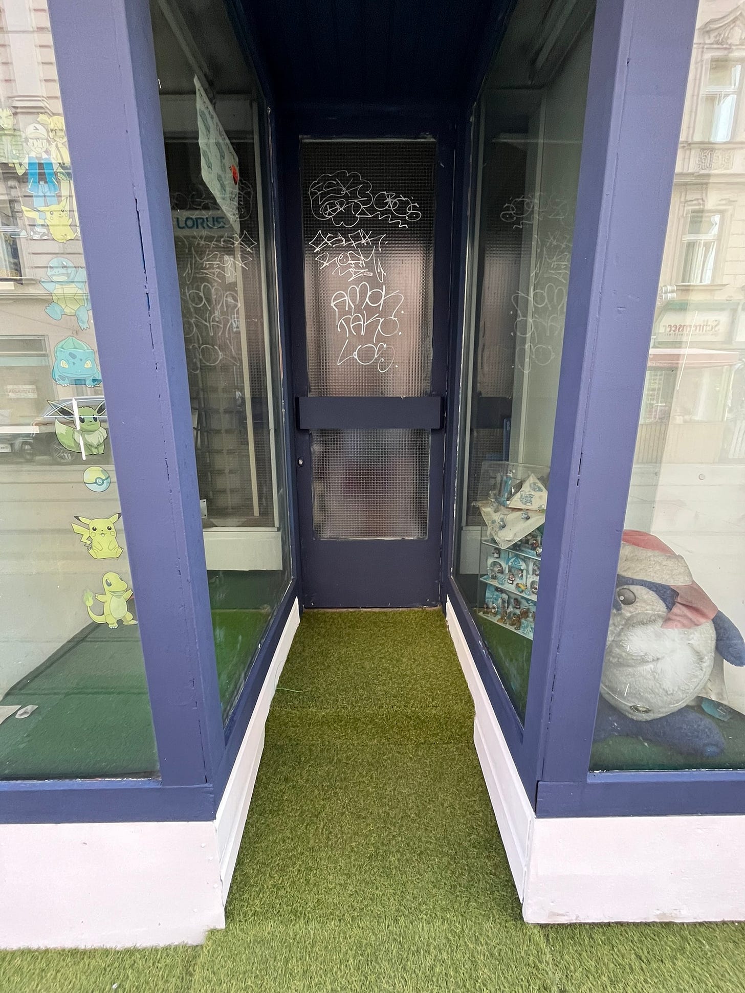 A doorway with a backstory, fake grass and a lick of paint.
