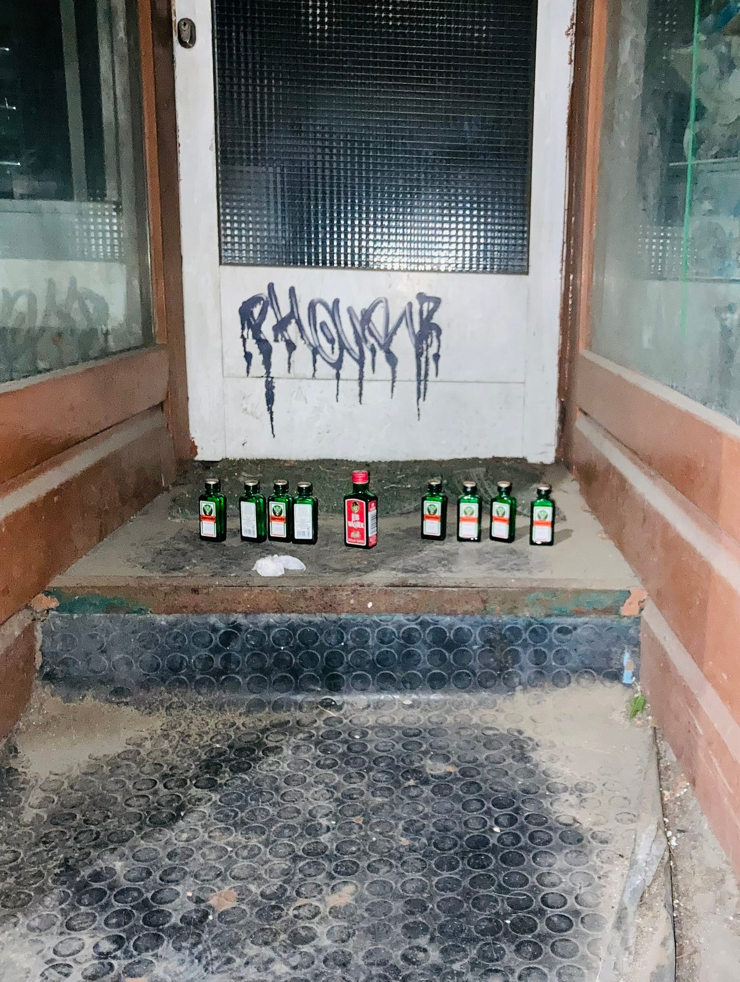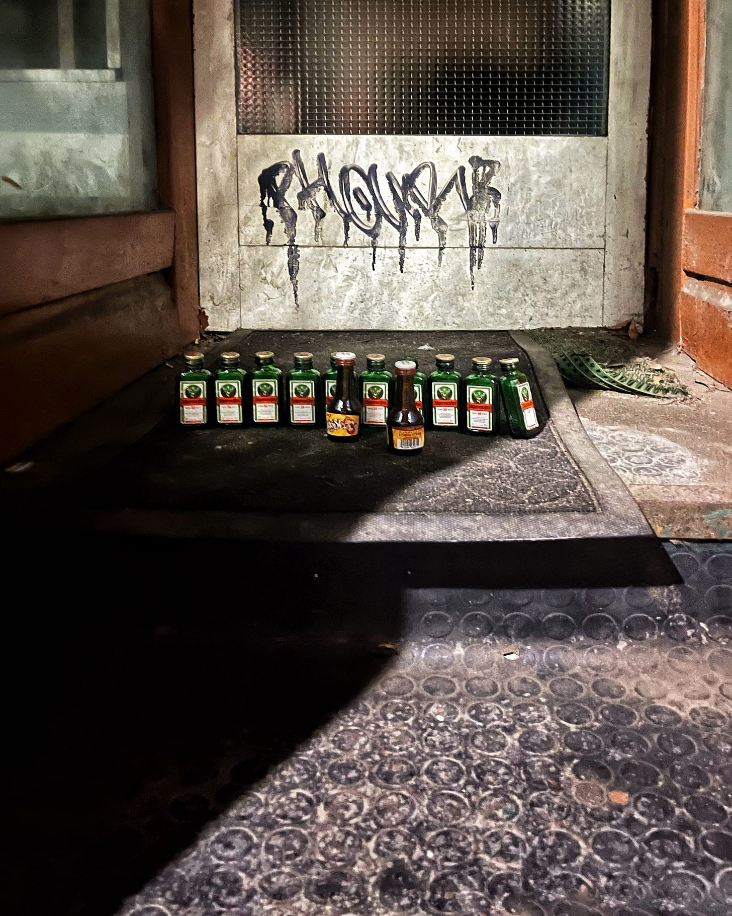 Today the theme is evolution, not the Darwinian kind, more Nietzsche. I’m not educated enough to be academic about either. I’ve spent more time in bars than libraries. Thus, through the power of a doorway and empty Jägermeister1 bottles, I will tell a visual story about emergence, mutation and ‘fizzling out.’