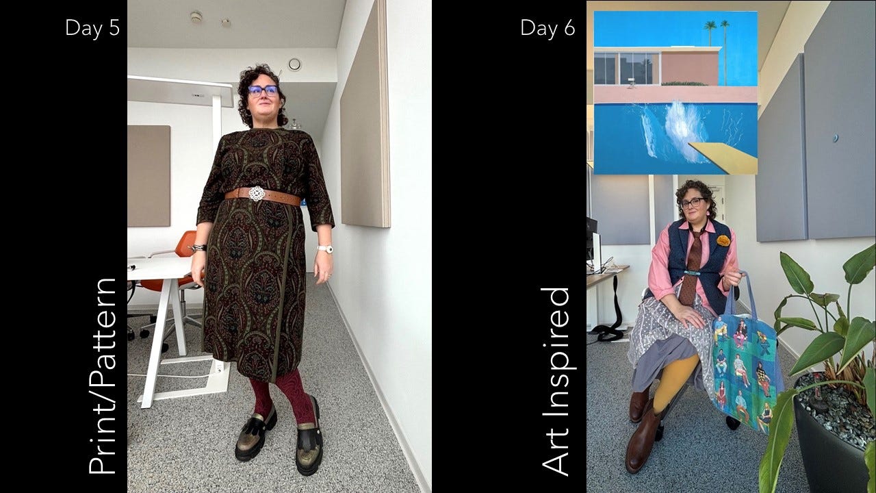 Nine colleagues and I are taking part in 30 days of 30 different outfits based on what we already have. There are optional themes for each day. We can opt out on home office days and weekends. It’s about sustainability, creativity and connection (as opposed to fashion). The themes and challenge details are here.